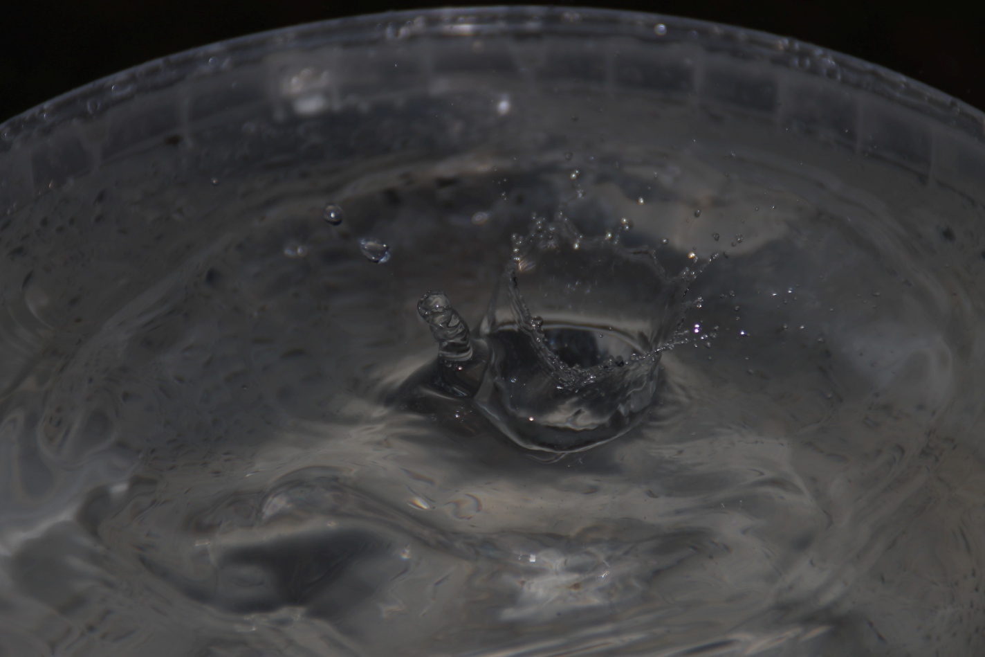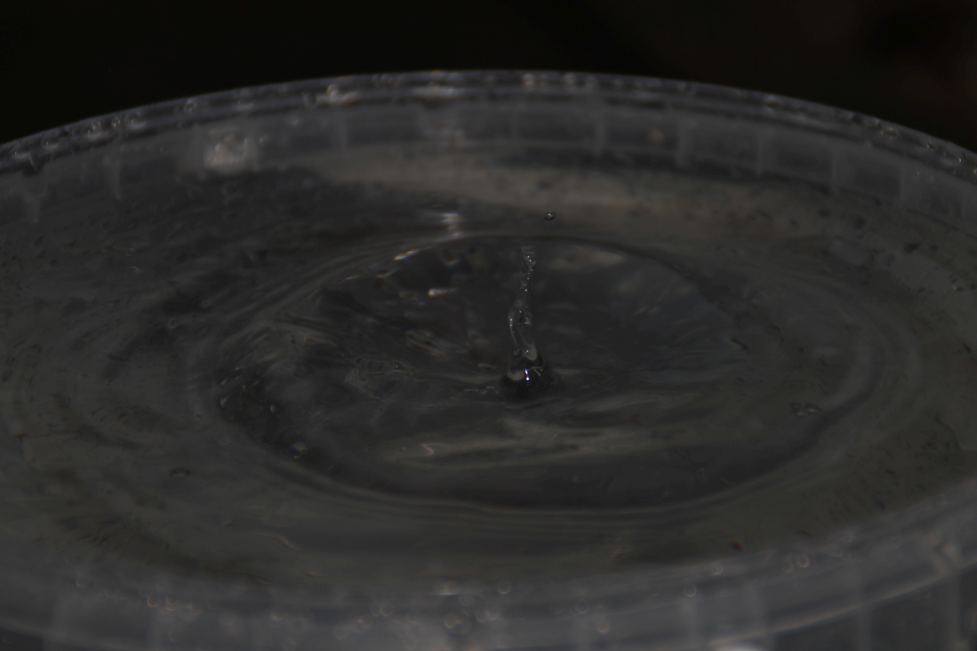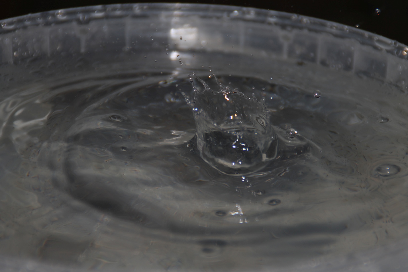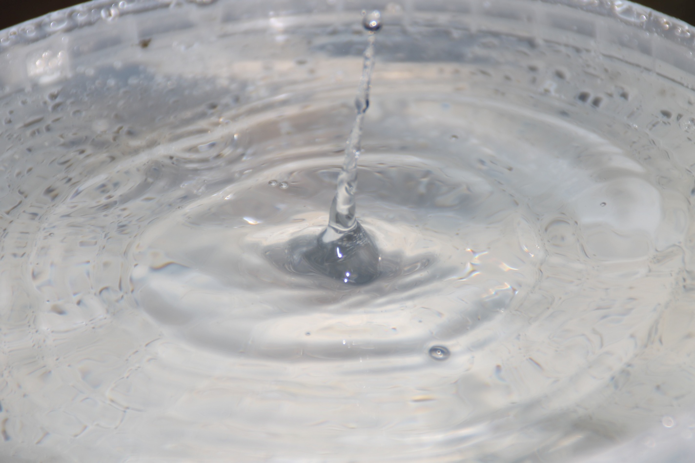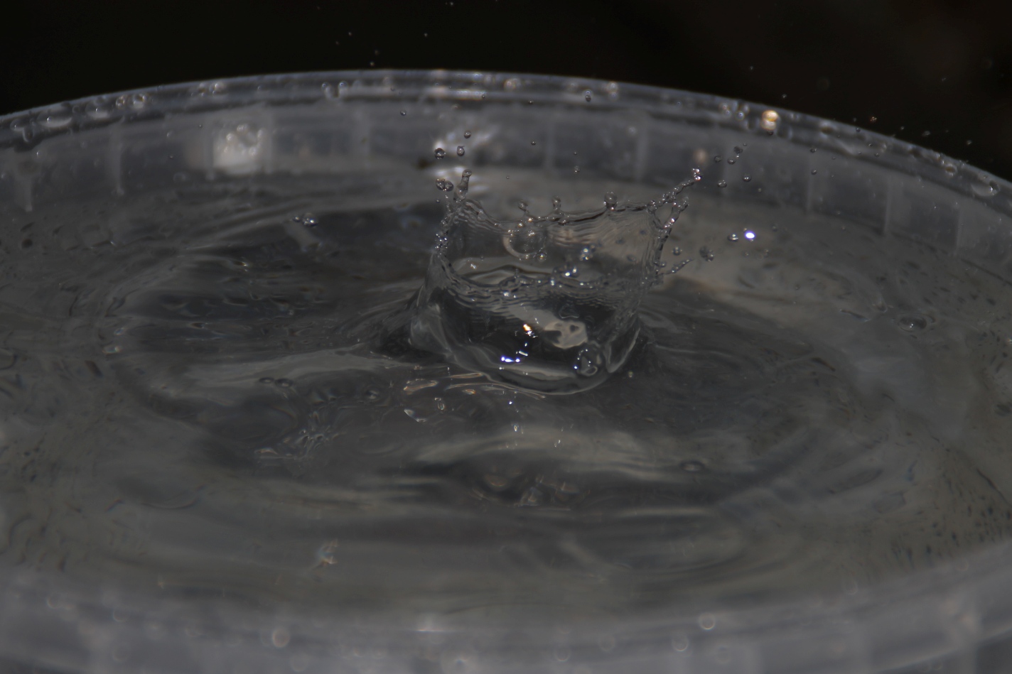 Gesagt, getan und mal einen Eimer so hingestellt, das es dort reintropfen konnte und man so den ein oder anderen Wassertropfen beim dem Aufschlag auf die Wasseroberfläche ablichten konnte. Allerdings hatte ich mir das ganze etwas einfacher vorgestellt wie es dann wurde und ich habe mich dann aber wie ein kleines gefreut, als dann doch das ein oder andere Bild dabei raus kam was durchaus brauchbar ist. Für das nächste mal weiß ich jetzt, das ich die Perspektive etwas ändern sollte und evtl. einen Aufsteckblitz nehmen sollte (nicht nur drauf stecken wie gestern, sondern vorher auch überprüfen ob die Batterien geladen sind 🙂 ) wobei ich sagen muss, dafür das es der interne Blitz war, ist es doch recht gelungen wie ich finde.